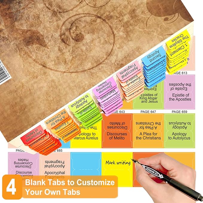 Index Tabs for The Complete 100-Book Apocrypha,2024 Edition 72 Color Coded Laminated Durable Tabs, 68 Books Chapter Tabs, 4 Blank Tabs,1 Placement Guide Card (Book Not Included)