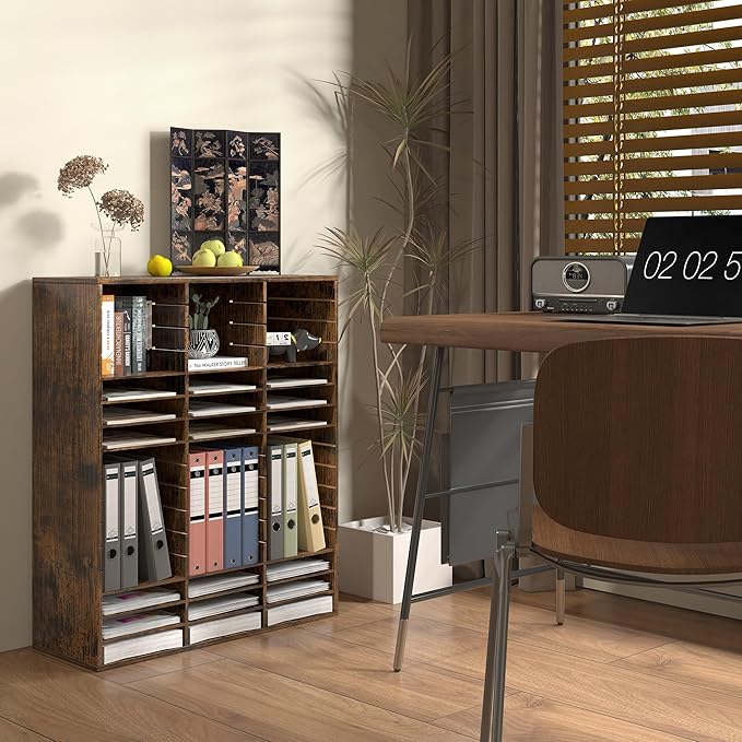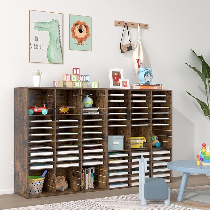 - 48-Compartment Mail Sorter Organizer: Organize 500+ sheets per slot in this industrial-grade classroom mailbox. With 48 compartments (12 x 9 x 2.1 inch eash slots), store comics, magazines, and travel brochures effortlessly. EPA-certified particleboard ensures long-term durability for office/classroom use.