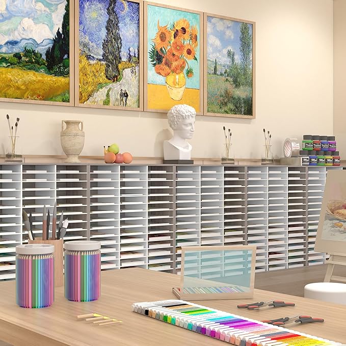 - 36-Compartment Mail Sorter Organizer: Organize 500+ sheets per slot in this industrial-grade classroom mailbox. With 36 compartments (12 x 9 x 2.1 inch eash slots), store comics, magazines, and travel brochures effortlessly. EPA-certified particleboard ensures long-term durability for office/classroom use.