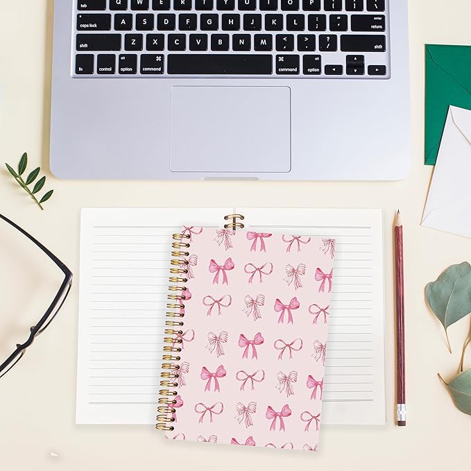 BearCake Pink Bow Sticky notebook,Cute Pink Preppy Journal,Trendy Coquette Pink Bow Notebook for women notebook,Pink bow notebook for note taking,Hardcover Spiral Notebook 5.5x8.3