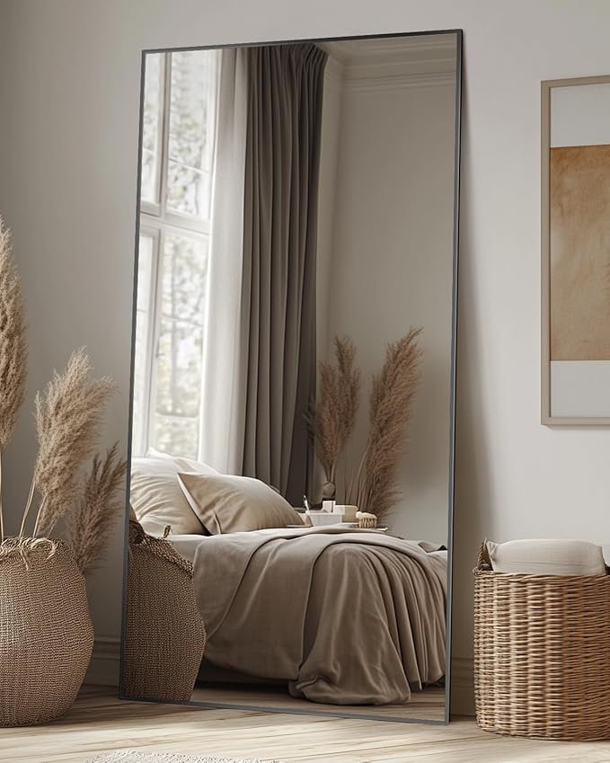 Antok Full Length Mirror, 76"x34" Floor Mirror, Floor Standing Freestanding Full Body Mirror with Stand for Bedroom, Hanging Mounted for Living Room Cloakroom, Black