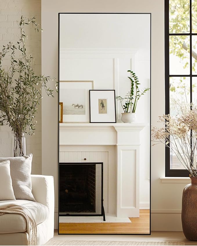 Antok Full Length Mirror, 59"x18" Floor Mirror, Floor Standing Freestanding Full Body Mirror with Stand for Bedroom, Hanging Mounted for Living Room Cloakroom, Black