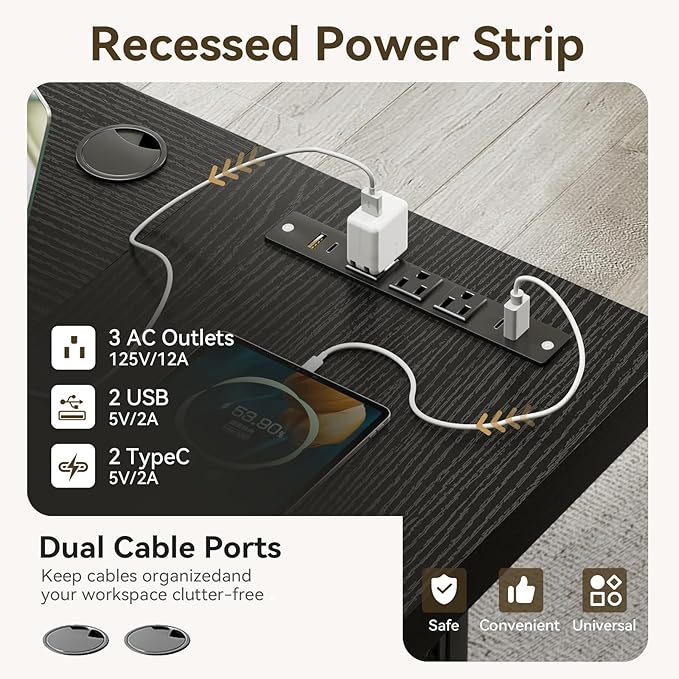 - 【Powerful Desk with Charging Ports】Upgrade your home office or study area with the Coleshome large desk. Featuring 3 power outlets, 2 USB charging ports, and 2 Type-C charging ports, this office desk keeps your devices powered and ready. Say goodbye to tangled cords and limited outlets. Perfect for a modern desk, computer workstation, or executive desk.