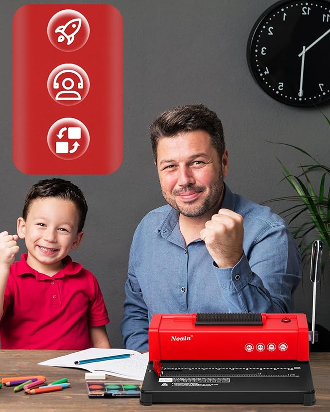 - 💯【Multiple Bindings in One Machine !】Noaln Upgraded Spiral Coil Binding Machine with Electric Coil Inserter helps to create professional-looking bound books in the office or at home quickly and easily. It's Vibrant Christmas Red look can be adapted to any home style for a touch of style and luxury. Make Documents, Contracts, Materials/Assignments, Teaching Books, Picture Books/Diary, Travel Tips/Notebooks, Photo Albums, Recipes, etc. It can also be a practical and educational gift!