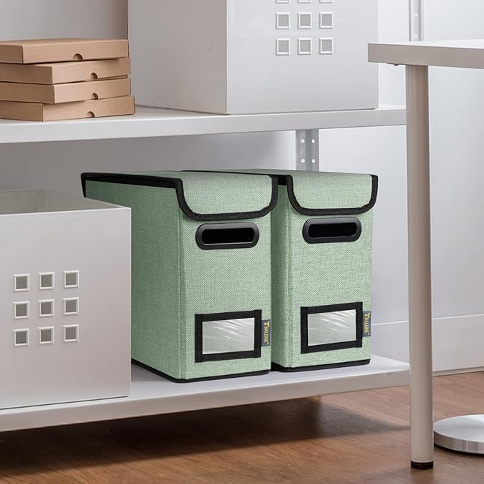 BALEINE File Organizer Box with Lid, Collapsible File Folder Organizer with Plastic Slide, Hanging File Folder Box for Office Document Storage (2 Pack, Green, S)