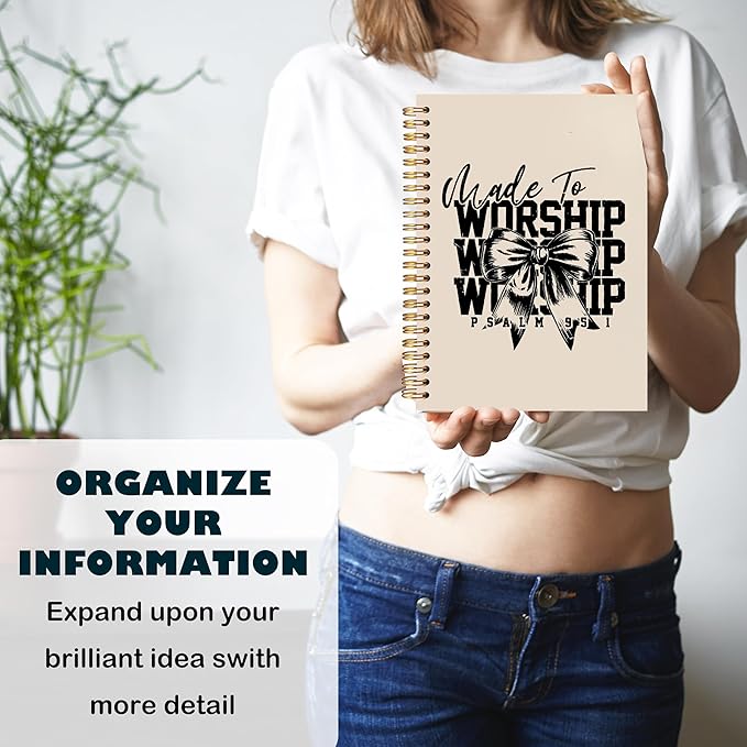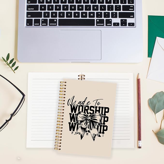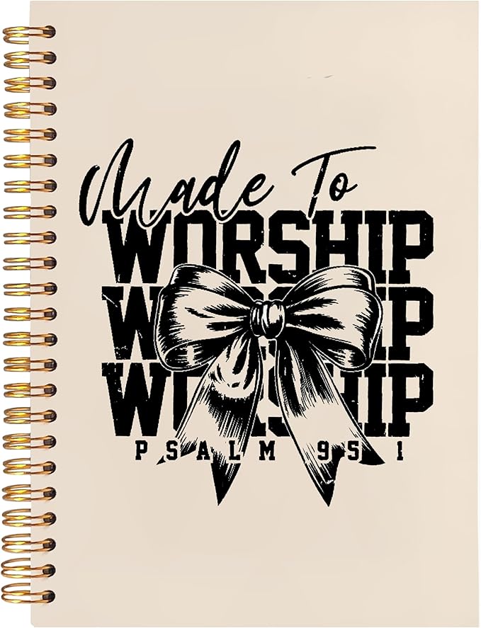 BearCake Christian Coquette Bow Notebook Journal, Made to Worship Prayer Journal for Women, Preppy Christian Gifts for Women, Bible Journaling Neutral Hardcover Spiral Notebook 5.5x8.3
