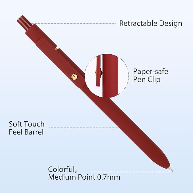 - DURABLE PEN CLIP: The retractable design protects the pen tip from damage and prevents the ink from drying out, while the sturdy clip allows for easy attachment to notebooks, planners, or pockets, ensuring your pens are always within reach