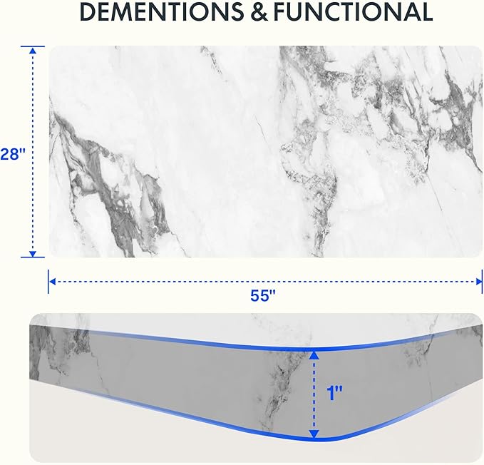 - AMPLE WHOLE-PIECE DESKTOP: With its whole-piece 1” eco-friendly desktop, this standing desk provides plenty of room for your computer setup, documents, and accessories, creating a well-organized and productive work environment. Due to hand measurements, desktop dimensions may vary slightly by 0 to 1”.