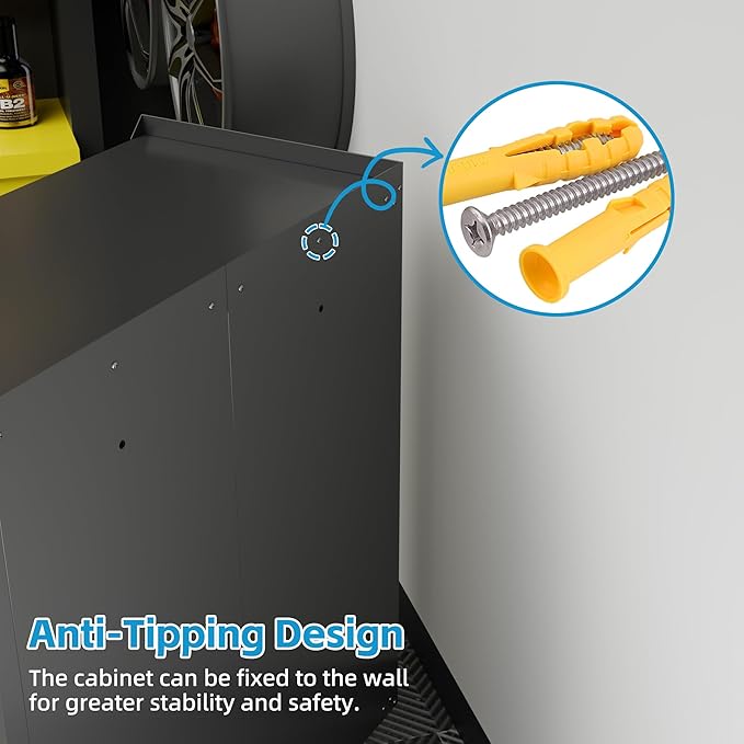 - [Easy to Assemble and Perfect Customer Support] This metal storage cabinet comes with easy-to-follow paper instructions and videos to help you set it up quickly. Any problem after receiving them(like damages, package lost,missing accessories) ,you can contact us. We will try our best to help u solve the problem.