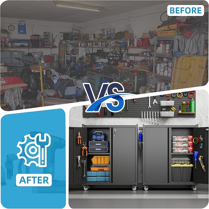 - [Reliably] Our rolling metal storage cabinet is built with a reinforced steel frame and powder coating, making it both corrosion and stain-resistant, perfect for garage home office storage.