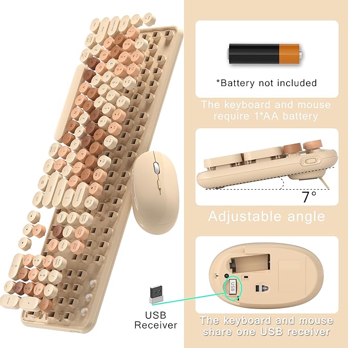 - Retro Colorful Design with Round Keycaps – Brighten up your workspace with this colorful wireless keyboard and mouse combo. The typewriter-style round keycaps offer a nostalgic yet modern feel, making it a perfect fit for home or office use