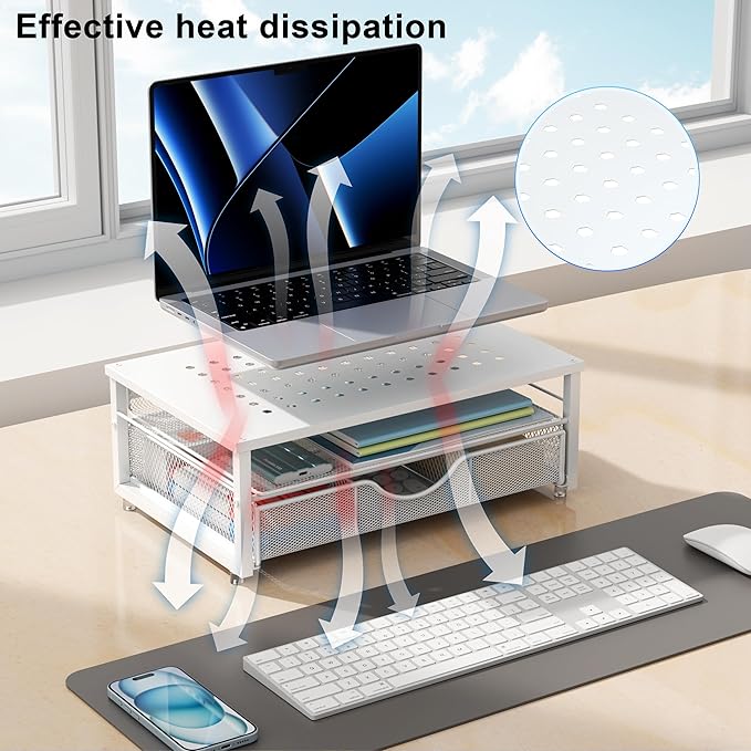 - 【Powerful and stable】: The monitor riser is designed with ventilated heavy steel plates and steel legs, which has a very large load-bearing capacity and effectively prevents equipment from overheating. Non-slip rubber pads provide stability during work.