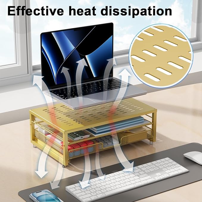 gianotter Computer Monitor Stand Riser, office organizer with Drawer, Office Organizers Storage for Classroom Office Supplies (Gold)