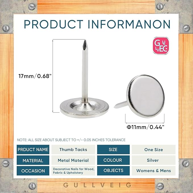 - Decorative and Functional: Our decorative nail heads and long thumb tacks are not only durable but also aesthetically pleasing. They can be used as wall tacks or carpet tacks, adding a touch of elegance to your home or office decor.