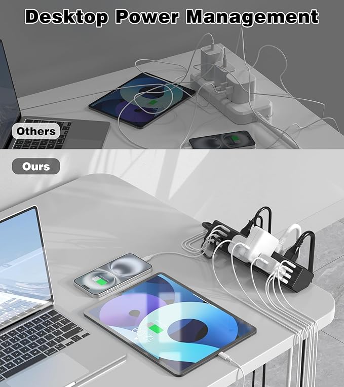 - 【Desk Clamp Power Strip with USB】This under desk power strip combines 8 widely spaced outlets (125V15A/1875W) and 8 USB ports (4 USB-A, 4 USB-C), providing power and charging for up to 16 devices, simultaneously to save more time, helping to keep your desk organizer.