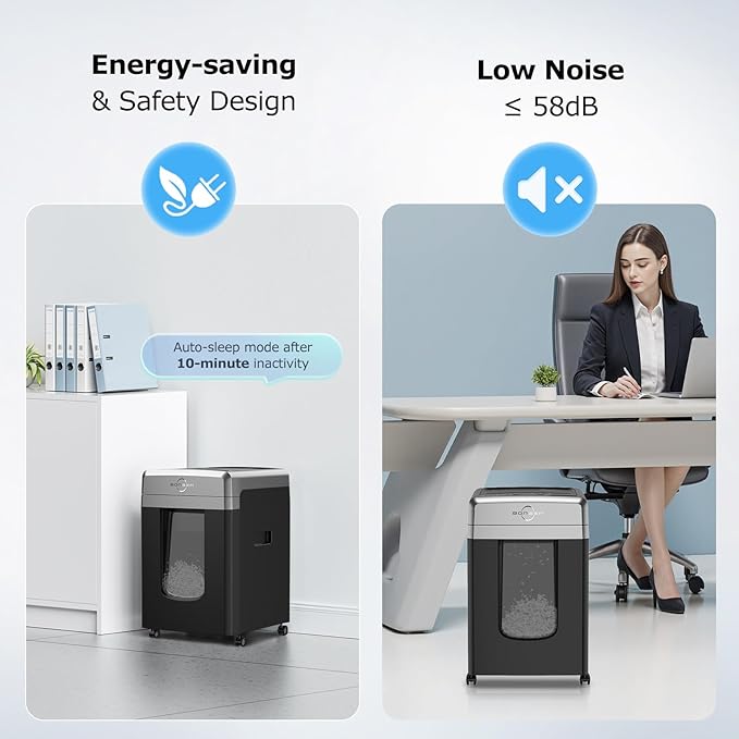 - Ultra-Secure Micro-Cut & Quiet Operation: Get maximum document security with confetti-like shreds measuring just 5/32" x 15/32" (4 x 12 mm); Operates at a quiet ≤ 58 dB, ideal for shared workspaces