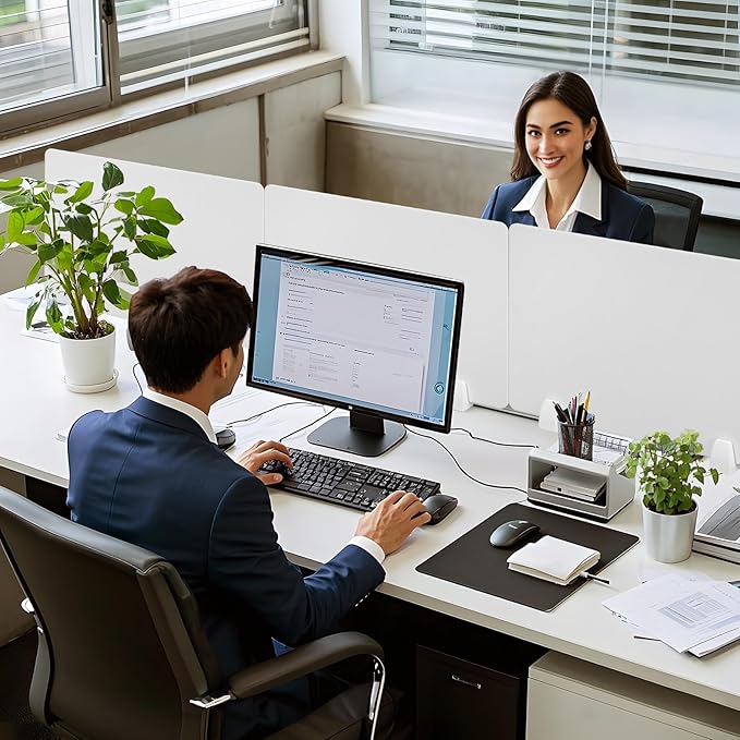 4PCS Desk Divider Office Partitions 23.6''x15.8'' Freestanding Desk Privacy Panel Protective Acrylic Partitions with Clips for Office School Call Center-Noise and Visual Guard