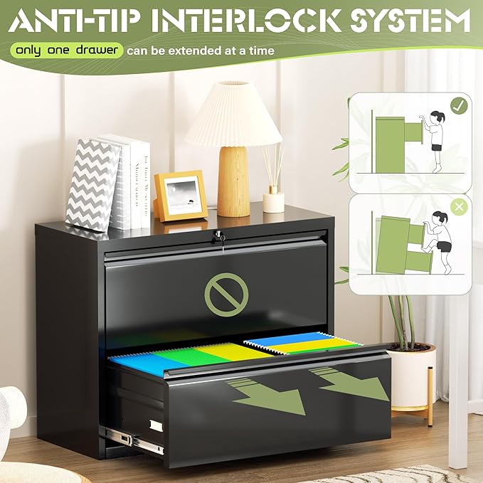 - 【High security】Two-drawer file cabinet with Lock is equipped with a built-in interlocking system to ensure drawer security. One locks with two keys ensures that your files are safe and easy to manage. The cabinet with drawers can be locked into two drawers at the same time with a lock, which is smooth and easy to operate.