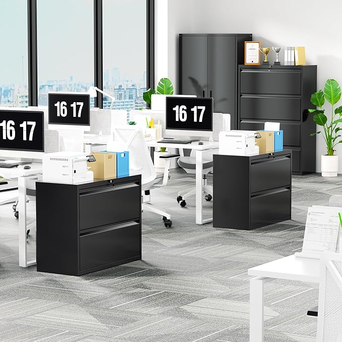 - 【Unique design】Lateral file cabinet is fully suspended drawer system with ball bearings makes the switching operation easy and noiseless, which it friendly for others to work with and always keeps a quiet environment. Non-mar padded base prevent from sliding and scratching floors.