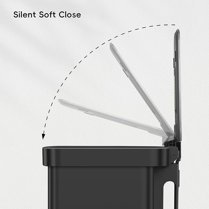 - Whisper-quiet Closing - The rugged step pedal mechanism is built to withstand years of daily use, and the bi-force damper soft open and close lid prevents slamming and banging