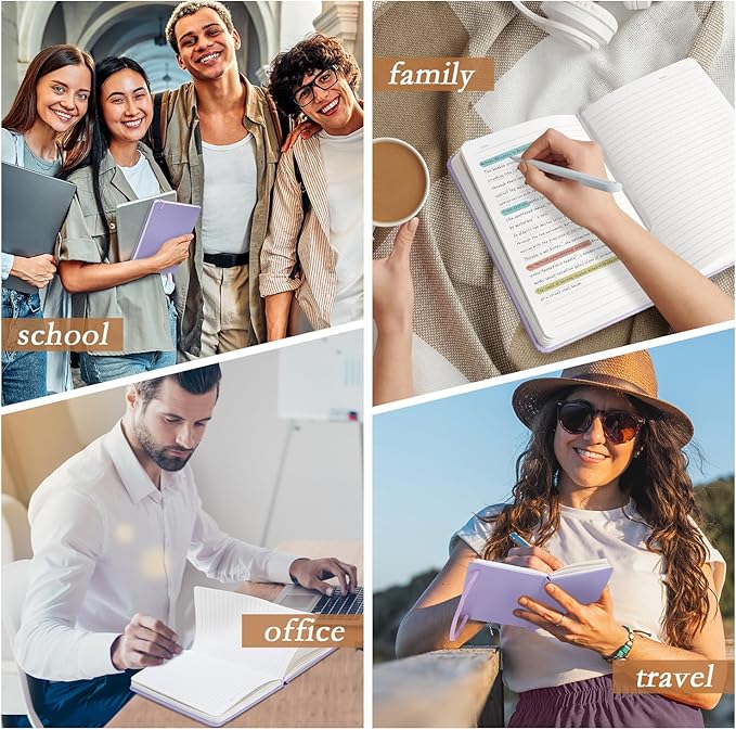 - A5 Hardcover Notebook: Available in 6 stylish colors (Black/Pink/Blue/Purple/Orange/Red). Features a high-quality matte PU leather cover with soft texture and stain-resistant durability. 160 pages of thick paper with rounded corner design to prevent curling. Single-pack for daily use or 6-pack set for long-term backup and bulk purchase, perfectly suited for both business and study needs.
