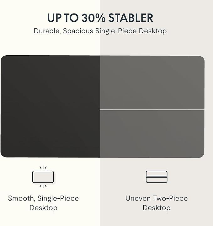 - AMPLE WHOLE-PIECE DESKTOP – FSC-Certified wood: Table top made of FSC-Certified wood, this standing desk features a spacious one-piece eco-friendly desktop that provides ample room for your computer setup, documents, and accessories, creating a well-organized and productive work environment. Hand-measured: ±1" tolerance.