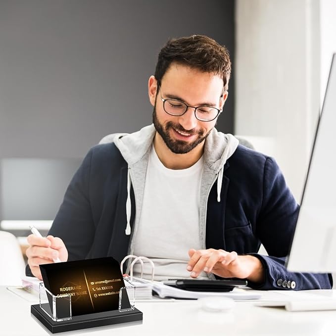 - Modern and Stylish Business Card Holder: The sleek combination of a matte black base and transparent acrylic gives this holder a contemporary, professional look—perfect for showcasing your business cards.