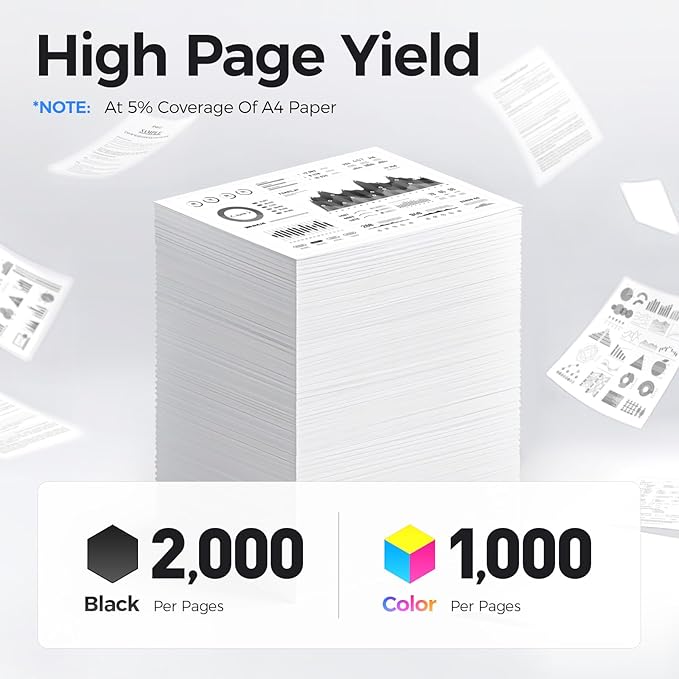 - High-Yield: up to 2,000 pages per 6022/6027 Black and pages per 1,000 Color (Total 5,000 pages, 5% coverage).