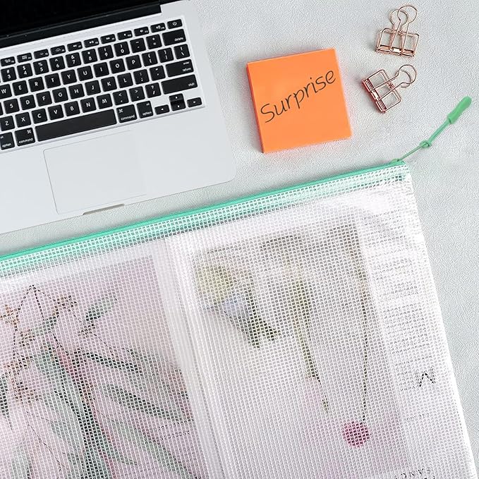 - QUALITY MATERIAL: High quality PVC material is strong and durable, the mesh bag material structure prevents tearing, the smooth metal zipper at the closure is convenient for accessing and placing documents, and the zipper of the transparent zipper mesh bag is also optimized for better quality and durability