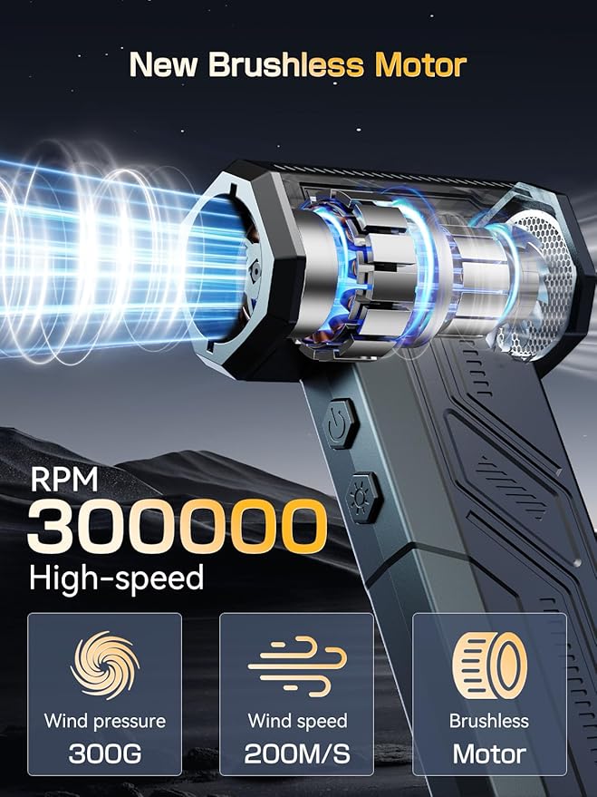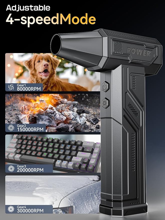- High-Speed Performance: The electric air duster boasts an impressive 300,000 RPM, delivering powerful airflow for efficient dust and debris removal, making it ideal for cleaning electronics, home, and car interiors.