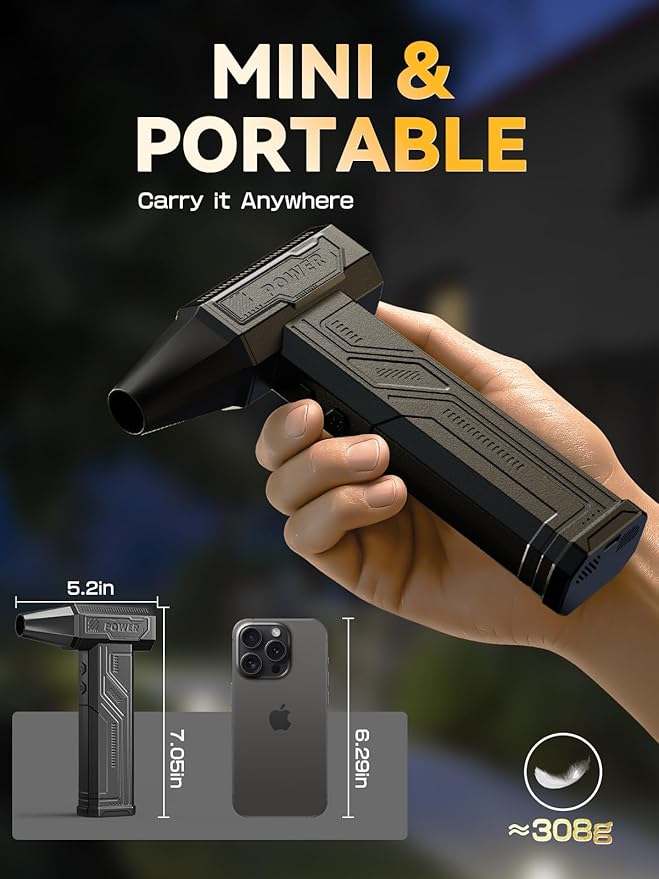 - Compact & Portable Design: Weighing just 0.7lb, the dust blower is lightweight and easy to carry, featuring a convenient storage bag for handheld use during travel, camping, or indoor cleaning.
