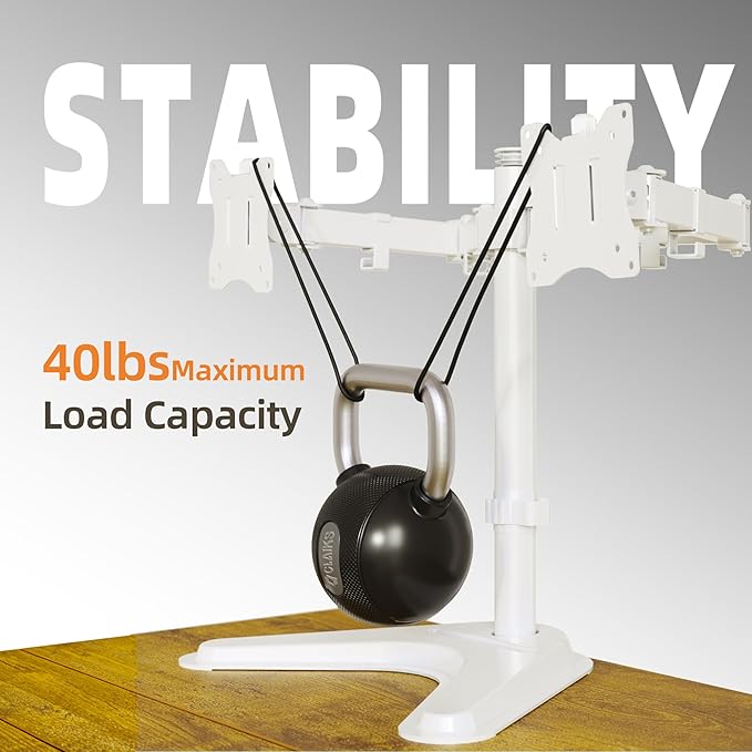 Claiks Dual Monitor Mount, Ergonomic Adjustable Monitor Arm for Max 32 inch Screens, Adjustable Computer Monitor Stand up to 40 lbs, VESA Mounting Holes 75&100mm, White