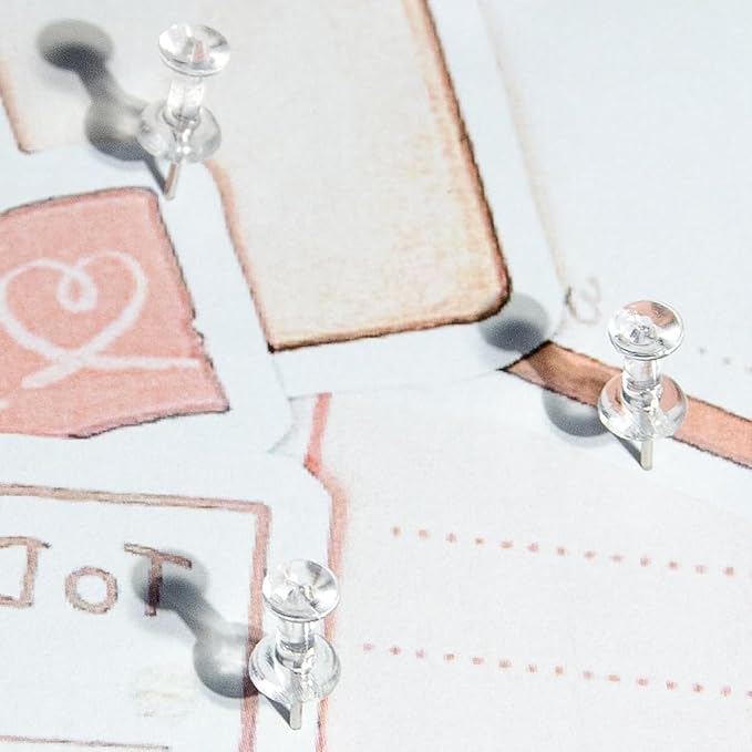 100 Pack Push Pins Tacks, Clear Plastic Head, Steel Point,Thumb Tacks for Bulletin Board,Stick Pins Thumb Tacks for Cork Board Wall Hangings (100, Clear)