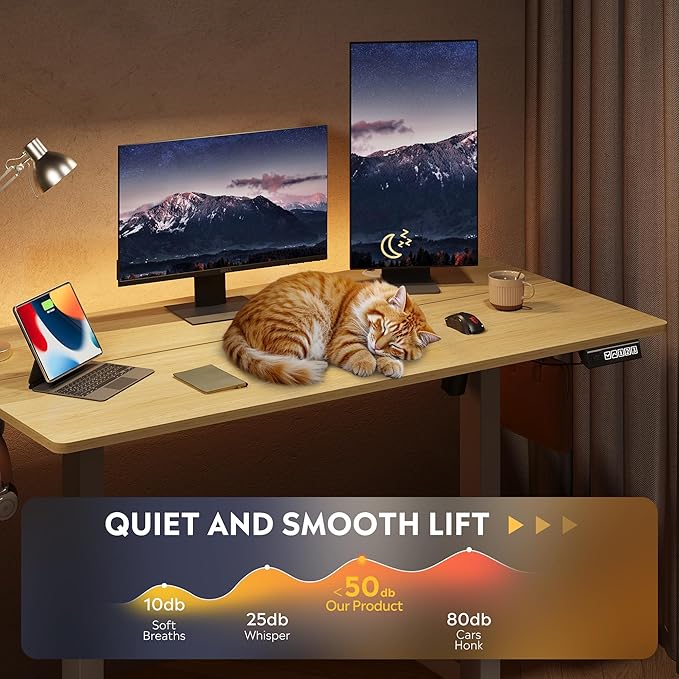 - 【Quite & Smooth Height Adjustments】Tri-motor system delivers whisper-quiet (<50dB) height transitions (28.35"-46.45") in seconds, eliminating manual adjustments and prevent desktop tilting. Standing desk adjustable height perfected for ergonomic shifts, ensuring buttery-smooth operation whether sitting or standing.