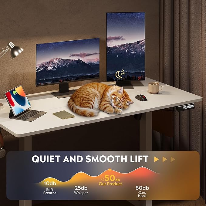 - 【Quite & Smooth Height Adjustments】Tri-motor system delivers whisper-quiet (<50dB) height transitions (28.35"-46.45") in seconds, eliminating manual adjustments and prevent desktop tilting. Standing desk adjustable height perfected for ergonomic shifts, ensuring buttery-smooth operation whether sitting or standing.