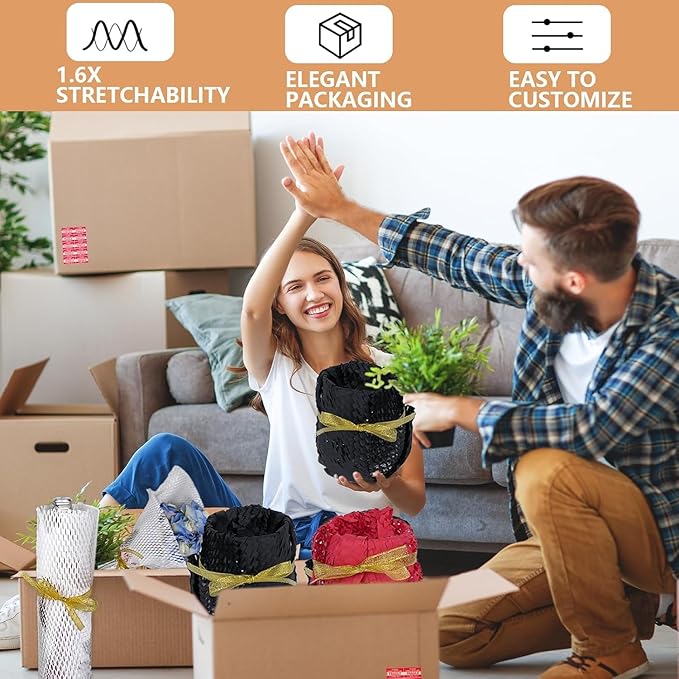 - Space saving: The packing paper with honeycomb structure made it can be stretched from 200 feet to 320 feet. 1.6 times longer after stretching. Use less money, get more filler, and space saving. Also you can get 20 Fragile Sticker labels, to keep your boxes safe during transportation.