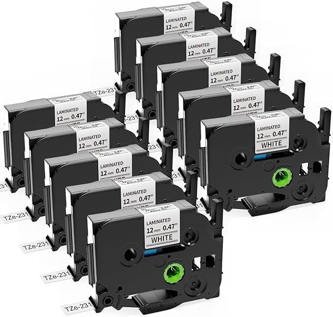 10-Pack Replace for Brother P Touch Label Maker Tape TZe-231 TZe TZ Tape 12mm 0.47 Laminated White TZe231 Label Tape for Brother Ptouch PT-D210 PT-D220 PT-H110 PT-D610BT PT-D600 PT-D410 PT-D400 PTH111