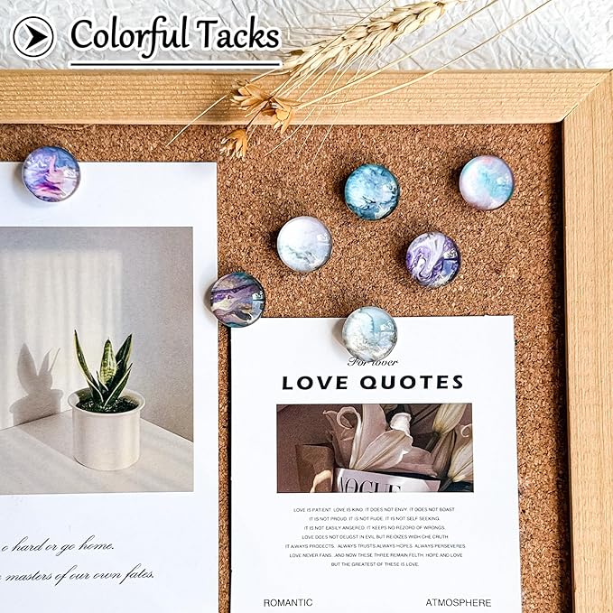 - Very Finished and Decorative Look: The cork board thumbtacks designed with 24 kinds of marble patterns, our push pins design can really brighten up an otherwise boring job!