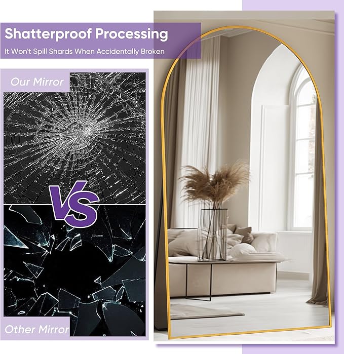 - High Quality and Safety Guarantee: The floor mirror is made of 3mm HD nano glass which provides high definition reflection. The back features an anti-explosion film, even if it's accidentally damaged, shards won't scatter everywhere, safe for surrounding children or pets