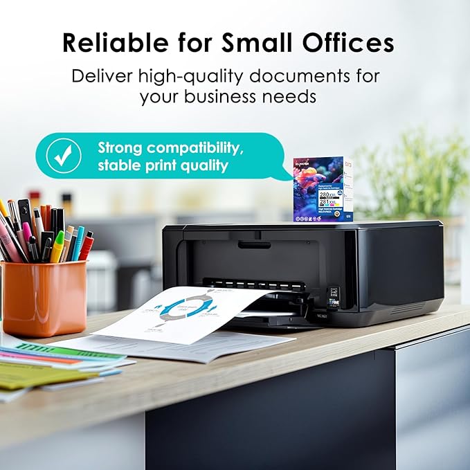 - High Yield: For canon 280 281 ink cartridges page yield is up to 650 pages per 280XXL PGBK Black ink cartridges, and 900 pages per 281XXL Black and Color ink cartridges (depends on printer and usage).