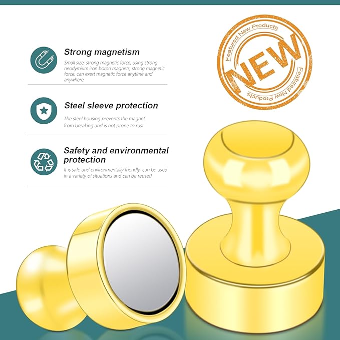 - 【Portable Size】 Each small magnet size is 0.47x0.63x0.2 inches, small in size but strong magnetic force. The shape design of the gold push pin magnets is not only easy to hold but also easy to carry and store