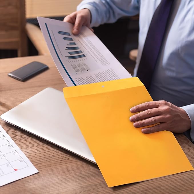 - Robust Construction for Extra Security: the strength of our large envelopes lies in their construction; Crafted from kraft paper and equipped with sturdy metal clasps, our envelopes resist tearing and are extremely durable; You can trust them with your important files