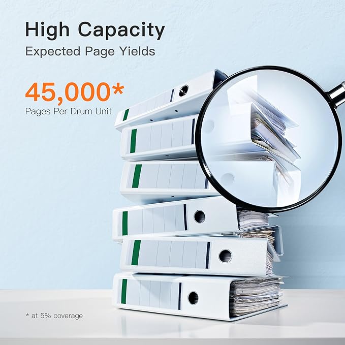 - Page High Yield: 45000 pages per DR 920 drum unit at 5% coverage