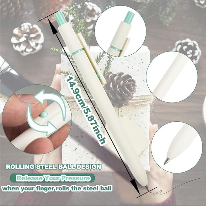 - Ergonomic Note-Taking Design-Featuring an ultra-slim barrel with super soft grip cushioning, these pens for note taking reduce hand fatigue during extended use. The rollable bead design releases your stress and allows you to focus on your thoughts,the weighted balance gives professional control - perfect for bullet journal grids or lecture notes Secure