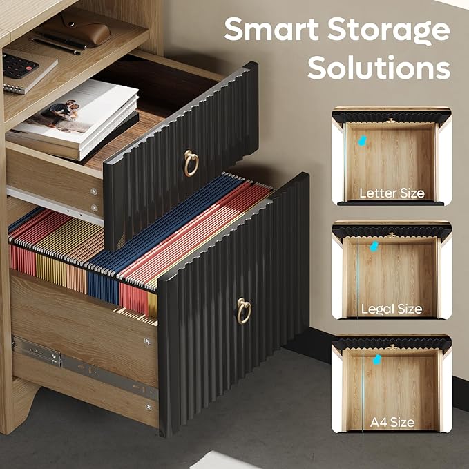 - Efficient Storage: Bestier modern desk features an open storage compartment, a storage drawer and a file drawer for letter/A4/legal-size hanging file folders, providing efficient storage solutions to keep your workspace organized and your essentials within reach
