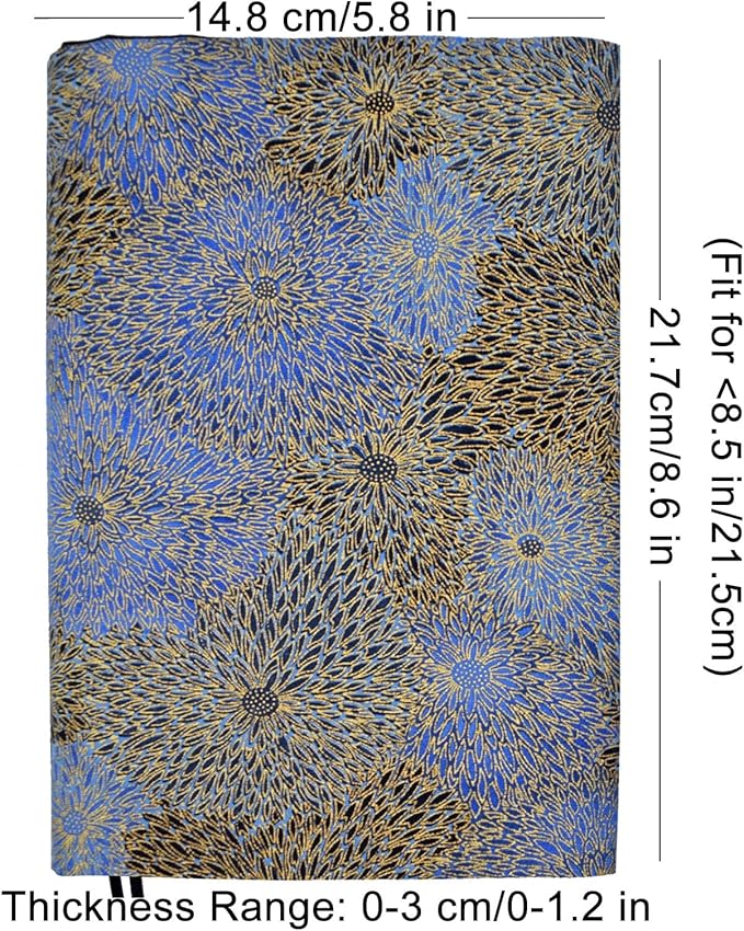 - 【Book Cover Dimensions】 Length: 21.6 cm/8.5 in(Fits 8.4-inch long books), Width: 14.8 cm/5.8 in,Thickness Range: 0-3 cm/0-1.3 in.Suitable for books, hardcover novels, and scrapbooks. Please ensure the book size is smaller than the cover size and not too thick for the cover. Check dimensions before buying.