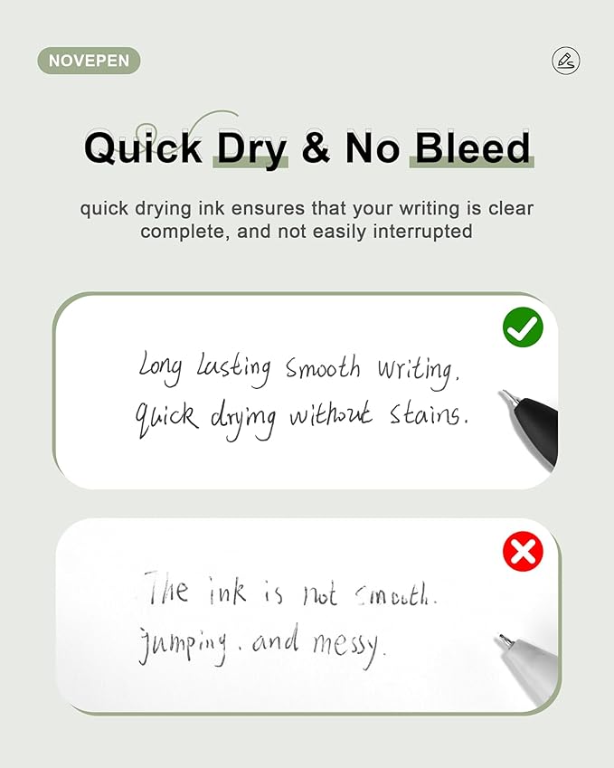 - Super Soft Grip: high-end morandi black middle point pen, soft silicone grip brings super soft touch, making each NOVEPEN colors pen easy and comfortable to grip.left-handed person are no exception.