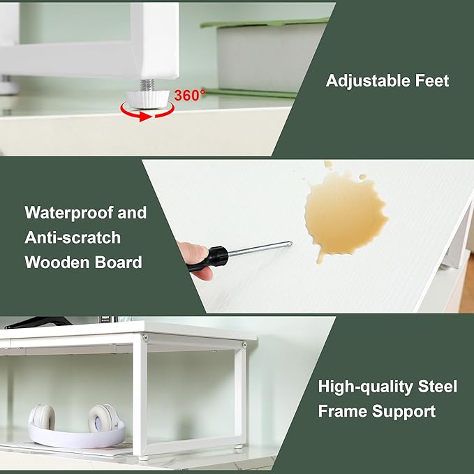 Clikuutory 45" Large TV Riser for 32-60 inch TVs, Tabletop Stand with Steel Legs, Storage & Dual - Screen Office Desk Function, Ideal for Home Office, Bedroom, Living Room, White