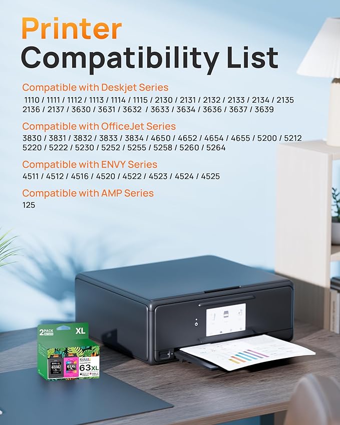 - Compatible Printer Models : DeskJet 1110 1111 1112, DeskJet 2130 2131 2132 2133 2134 2136, DeskJet 3630 3631 3632 3633 3634 3635 3636, ENVY 4510 4511 4512 4513 4516 4517, OfficeJet 5200 5255 5258 3830 3831 3832 3834 DeskJet 1110 1111 1112, DeskJet 2130 2131 2132 2133 2134 2136, DeskJet 3630 3631 3632 3633 3634 3635 3636, ENVY 4510 4511 4512 4513 4516 4517, OfficeJet 5200 5255 5258 3830 3831 3832 3834