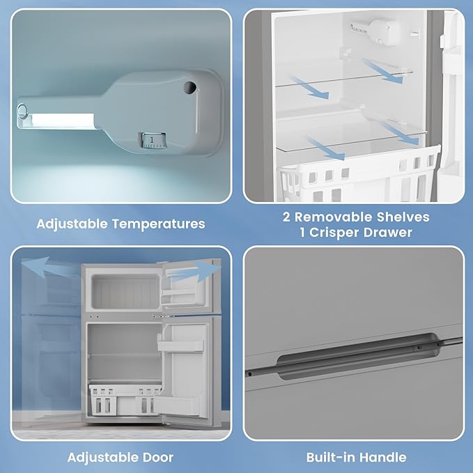 3.1 Cu.Ft Small Fridge with Freezer, Compact Refrigerator with 2 Doors, Mini Fridge with Adjustable Removable Glass Shelves for Bedroom, Dorm, Office or Apartment,Grey